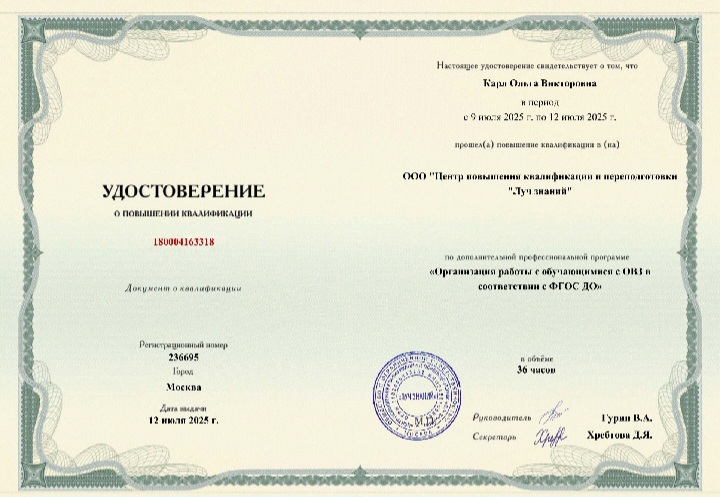 Сертификат об участие в вебинаре по палочкам Кюизенера